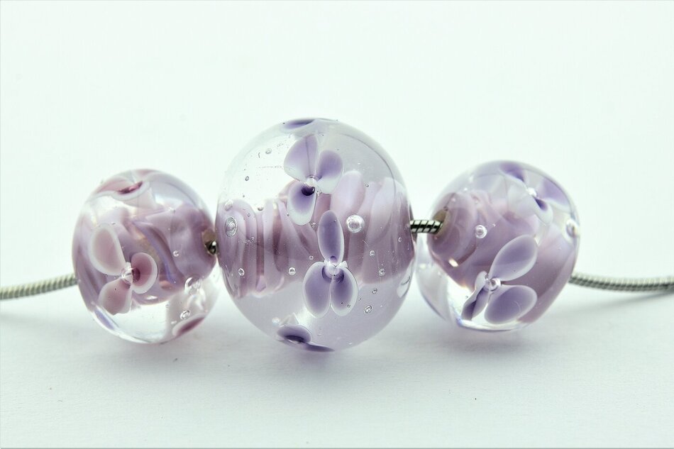 Autorská vinutá perla se stříbrnými středy (Ag 925/1000) s otvorem 4,3mm. Vhodná pro náramky typu Pandora, Trollbeads, ... . Cena za kus.
